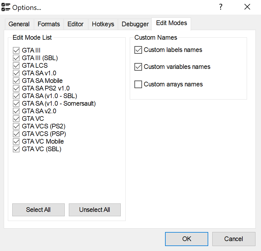 The file [`CustomLabels.ini`](https://docs.sannybuilder.com/edit-modes/customlabels.ini) contains the list of label names and their offsets. If the disassembler finds a match between the label offset in the source file and the offset defined in the INI file it gives this label a name associated with this offset.